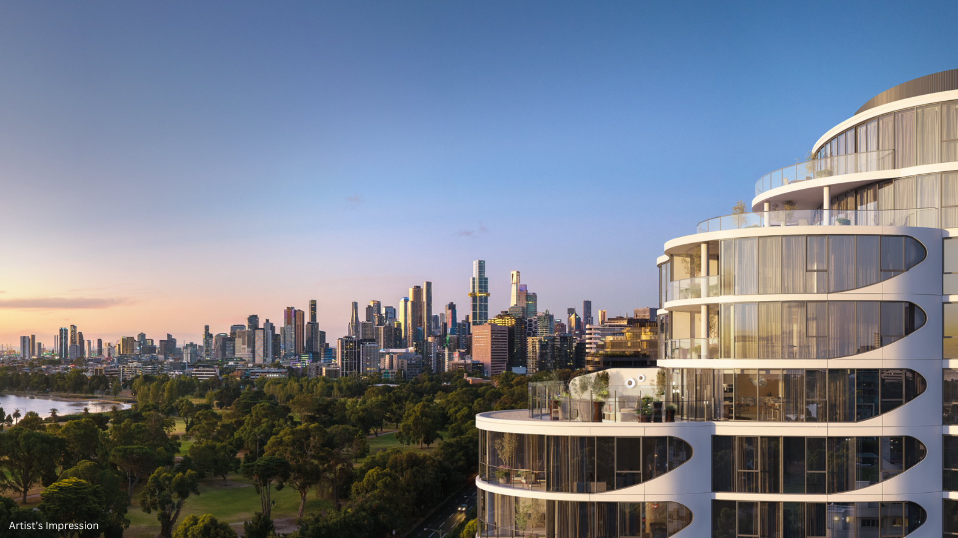 The Albertine invites one of Melbourne’s most spectacular views. From the sparkling skyline of the CBD to the sprawling green of Albert Park and its golf course, to the shimmering lake and the endless expanse of Port Phillip Bay.