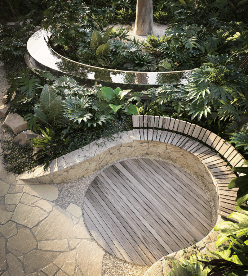 A poetic tribute to nature, The Albertine’s landscape design celebrates green on green, introducing texture and gloss through intelligent, uplifting planting. Creating its own tranquil microclimate, these lush and immersive gardens nod to the area’s wetland heritage.