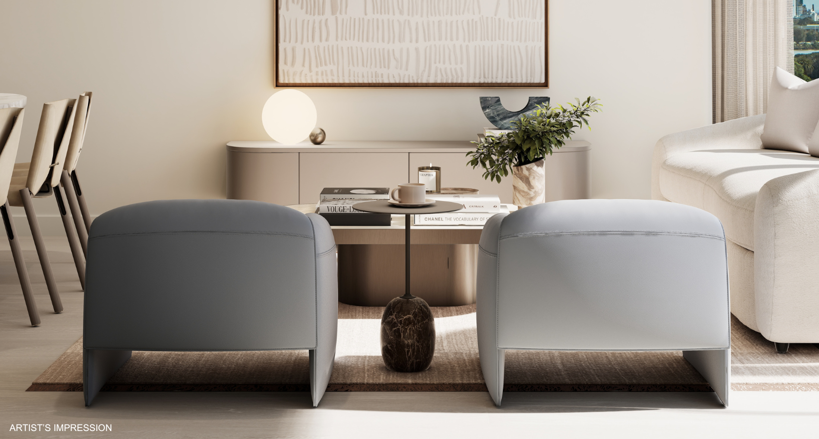 Artist's impression was produced prior to planning approval, statutory approval and commencement of construction and is subject to change. The information, image and artists' impression depicting interiors and exteriors are intended only as a guide and are not to be relied on as representative of the final product or the apartment type advertised. Architecture is indicative only and subject to change. Internal and external views are indicative only and subject to change. Photography correct as at October 2022 and does not represent any future development that may occur in the area. The information provided herein is believed to be correct as at March 2026.